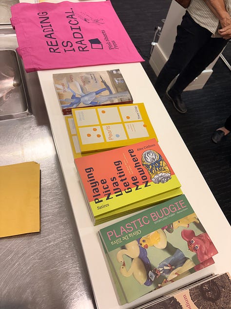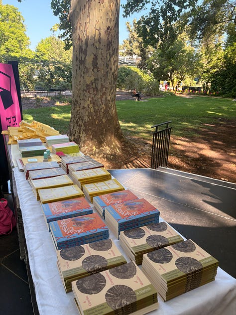 Olivia De Zilva quotes Spiderman and reads a poem about the Temu package of democracy and gives so much in her third of six events for the week. Somehow she even has the energy to get dinner with me afterwards so we can gossip like it’s a real writers’ festival and so my friend, out from Sydney on her annual AWW visit, can fan girl over Olivia.