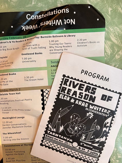 Alisa Ahmed and Jen Mills and Annie Waters and Ren Wyld are around every corner, considering every detail, having given so much to this week despite running businesses and appearing on panels and being pregnant and supporting loved ones. There is a small problem with catering. So much goes on behind the scenes of a writers’ festival and the fact that this one has been pulled together by volunteers over five weeks is truly unbelievable.